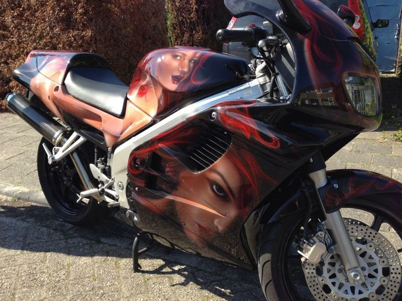 Het kan: een custompaint op je motor, scooter of fiets, met vlammen, draken of gewoon een kleur die origineel is.